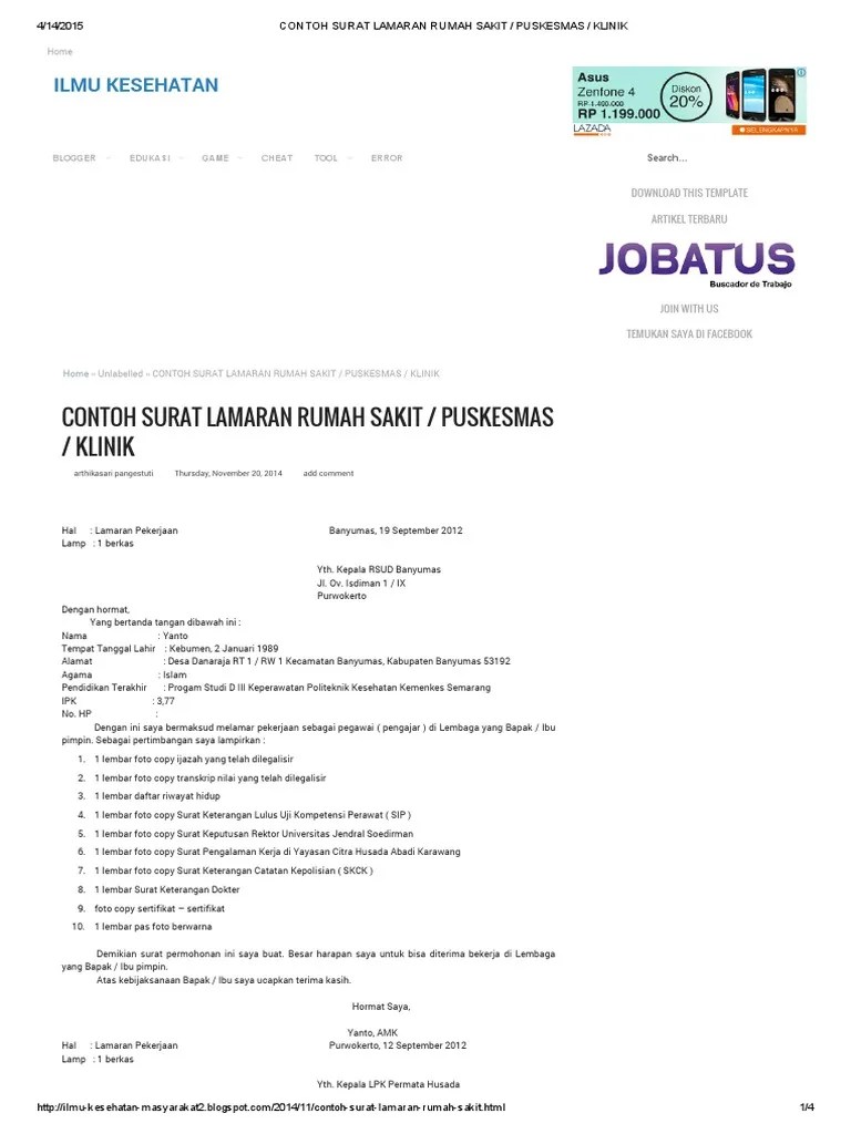 Contoh surat lamaran kerja puskesmas : Khususnya untuk anda yang membutuhkan referensi untuk melamar pekerjaan sebagai dokter ke rumah sakit puskesmas ataupun ke klinik. Contoh surat lamaran kerja masuk puskesmas surat pimpinan kebidanan : Surat tanda registrasi (bagi tenaga kesehatan=dokter, s.kep ners, diii. Contoh surat lamaran tenaga honorer di puskesmas from cdn.statically.io fotokopi surat keterangan sehat dari dokter, 1 lembar. Contoh surat lamaran kerja bidan di puskesmas. Contoh surat lamaran kerja yang baik dan benar . Contoh surat lamaran kerja honorer puskesmas di atas sebaiknya dipergunakan secara bijak untuk melamar pekerjaan sebagai tenaga puskesmas non . The modifmobilz.com team also provides the picture in high quality resolution (hd image resolution) that may be downloaded simply by way. 10 contoh surat lamaran kerja . Maka dengan hal ini lah kita dapat membuat contoh surat lamaran kerja perawat di puskesmas atau pun klinik. Dengan ini saya ingin mengajukan lamaran kerja di rsud ulin yang ibu pimpin. Karena itu, dalam lamaran kerja perawat di rumah sakit/puskesmas/klinik, penting untuk menyertakan alamat lengkap, juga kepada siapa surat .